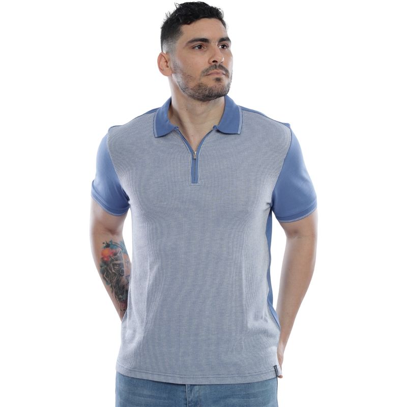 Presenta cuello tipo camisa con un cierre metálico de un cuarto, que permite ajustar la apertura según tu comodidad y estilo. Su corte de manga corta y diseño sin puño proporciona libertad de movimiento y un confort excepcional, manteniendo un estilo cuidado y contemporáneo.