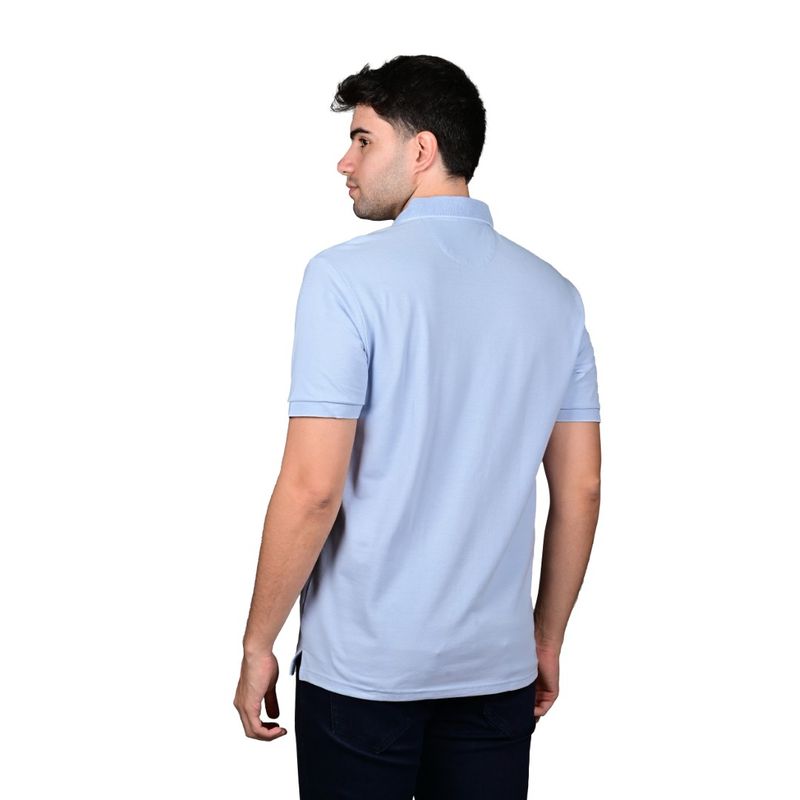 La Remera Polo Manga Corta Liso Gola Detalle Celeste Hombre New Green combina elegancia y simplicidad, perfecta para quienes buscan un estilo clásico con detalles modernos. Su cuello camisero ribeteado y la tapeta con dos botones visibles aportan un acabado refinado, mientras que el pequeño logo bordado a la altura del pecho identifica la marca con discreción.