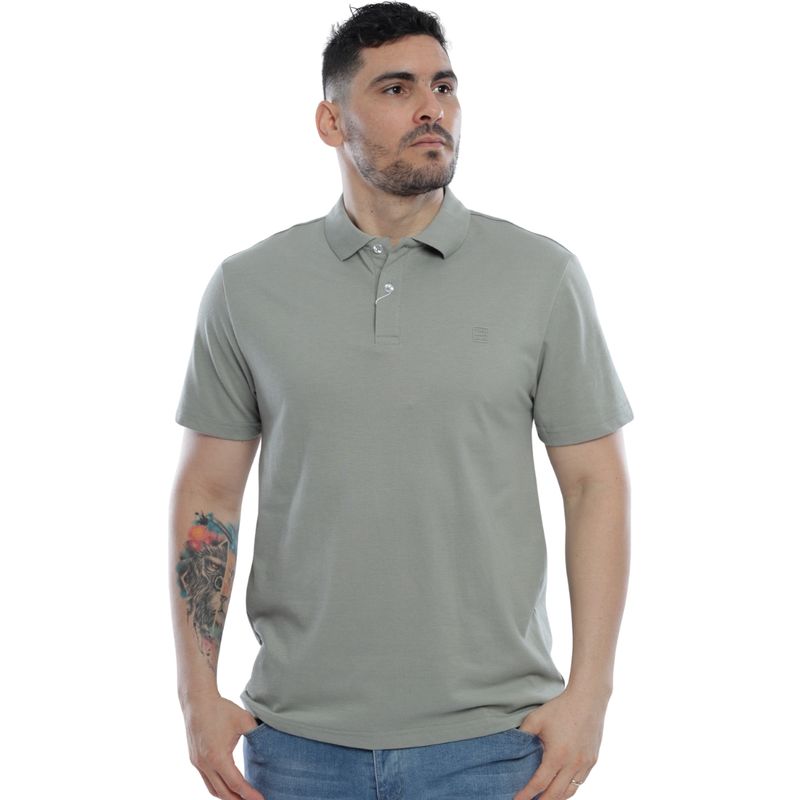 Remera polo masculina de manga corta en color verde pálido liso, ideal para un look fresco, sofisticado y versátil. Su diseño clásico incluye un cuello tradicional y una tapeta de dos botones transparentes, ofreciendo un estilo limpio y atemporal. En el pecho, presenta un logo discreto grabado en tono sobre tono que refleja elegancia y distinción sin saturar el diseño. La ausencia de puños en las mangas refuerza la sensación de comodidad y libertad de movimiento.