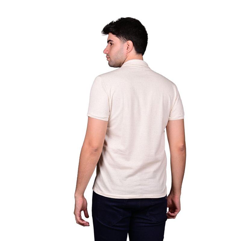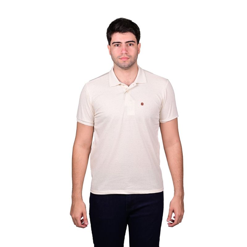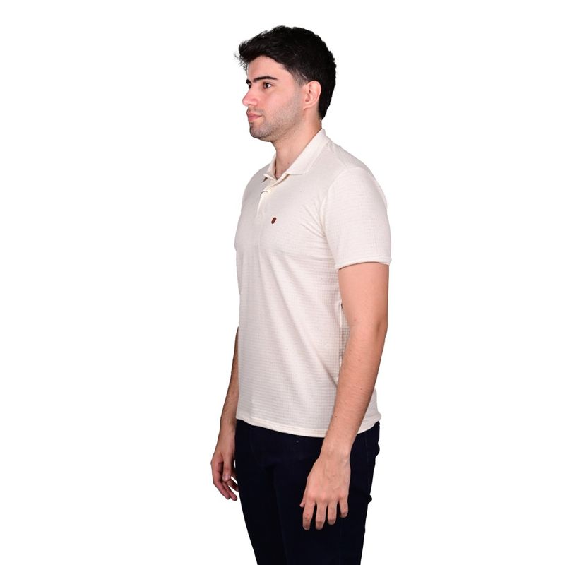 Remera polo de manga corta para hombre con un corte clásico que combina comodidad y estilo atemporal. Presenta un cuello de solapa con tapeta y dos botones oscuros, lo que aporta un acabado limpio y elegante. La tela cuenta con una textura de pequeños cuadros, ofreciendo un detalle visual sutil que hace que la prenda destaque sin ser recargada.
