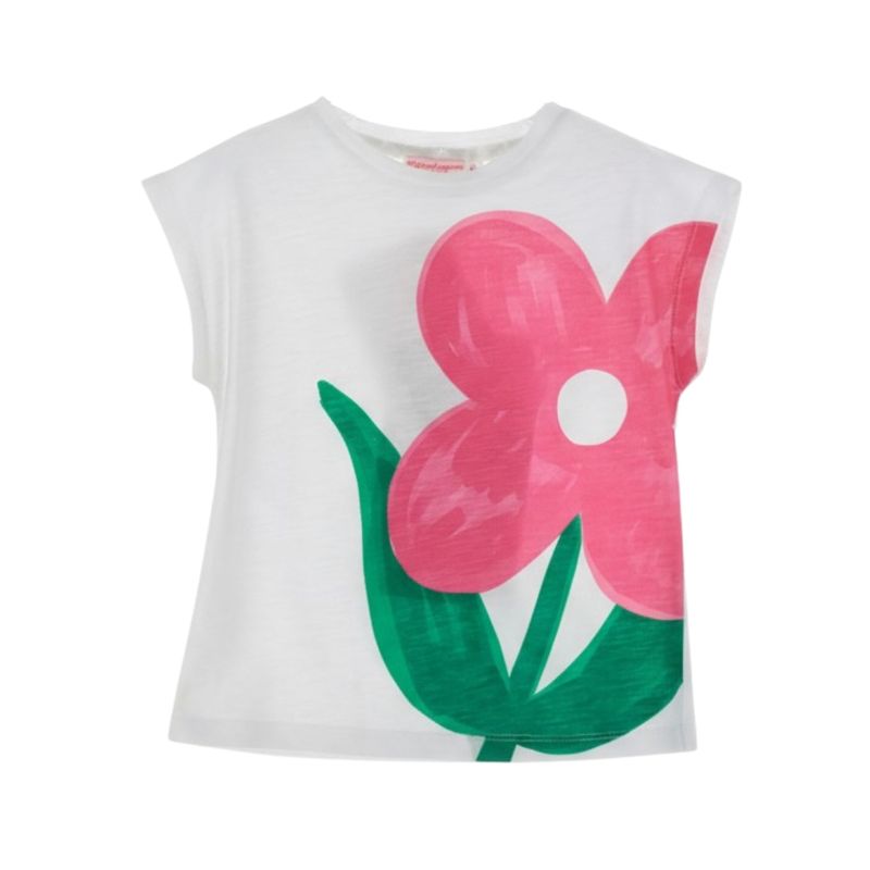 La Remera Sin Manga Estampado Flor Blanco Niña Original Marines es una prenda fresca y alegre, ideal para los días cálidos. Su diseño sin mangas y cuello redondo ofrece comodidad y libertad de movimiento, mientras que el estampado frontal de gran tamaño con una flor rosa fucsia y tallo con hojas verdes aporta un toque divertido y llamativo al look infantil.