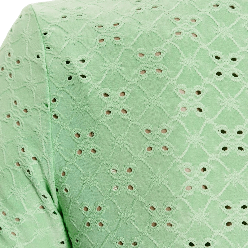 La remera de Jacqueline de Yong tiene cuello redondo alto y mangas cortas. El bordado le da un toque unico a la remera.