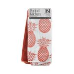 Set Toallas de Piñas (Naranja/Blanco): Una toalla naranja sólida con textura tradicional y otra blanca con estampado de piñas en naranja, perfecta para aportar un toque divertido y decorativo mientras limpias o secas superficies.