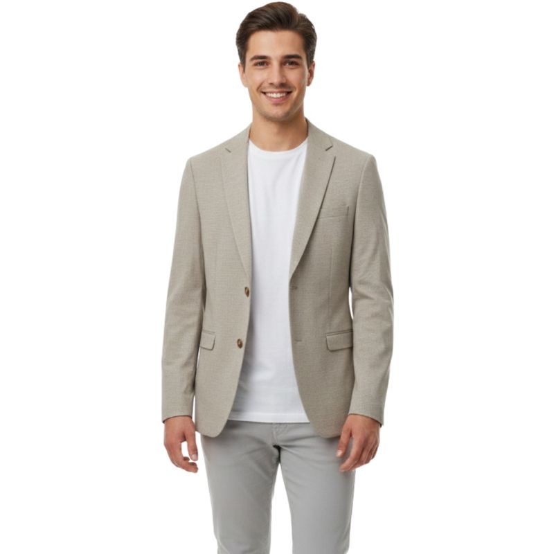 Perfecto para combinar con pantalones de vestir, chinos o incluso jeans en tonos neutros, logrando un look equilibrado y versátil. Se puede complementar con camisas de manga larga o remeras lisas para un estilo más casual. Zapatos de cuero o mocasines completan el conjunto, aportando elegancia y formalidad.