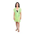 La Salida De Baño Espolverino En Encaje Verde Mujer L'Exclusif es una prenda ligera y sofisticada, perfecta para disfrutar de los días de verano con estilo. Su diseño corto en color verde lima fluorescente aporta un toque vibrante y moderno, mientras que el encaje o crochet con patrón floral calado realza la feminidad y la frescura del look. Las mangas cortas y el cinturón anudable en la cintura permiten ajustar el calce, logrando una silueta cómoda y favorecedora.