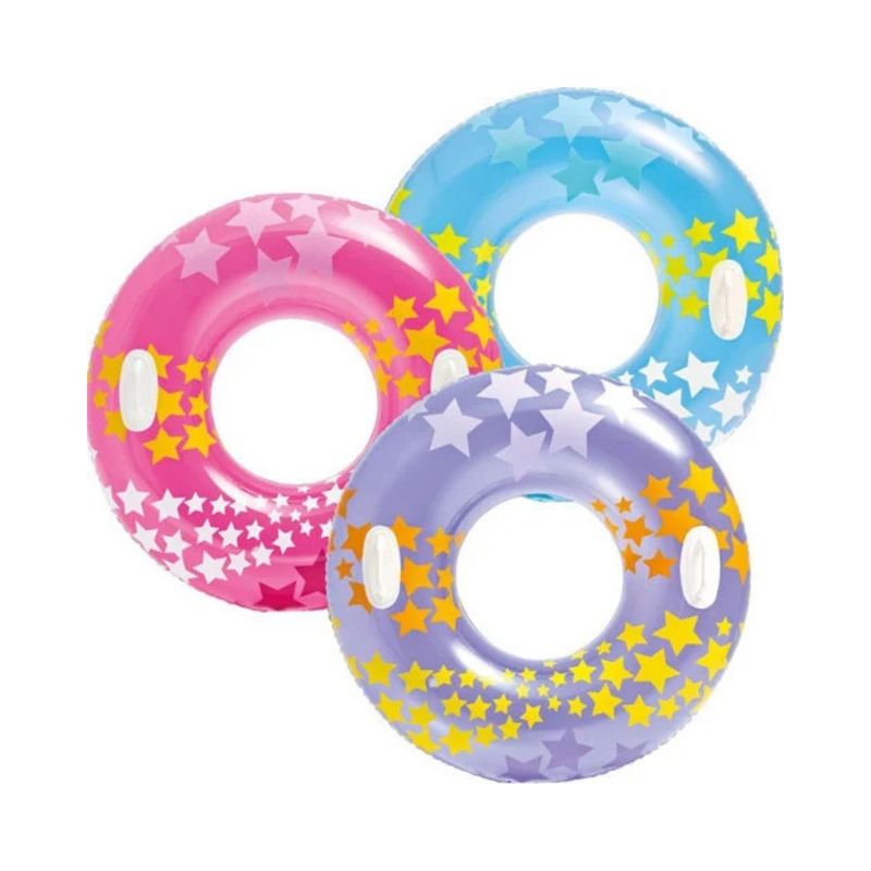 Este salvavidas circular con asas es ideal para brindar seguridad y diversión en el agua. Diseñado con un diámetro de 91 cm (36"), cuenta con asas resistentes en ambos lados que facilitan el agarre y la estabilidad durante su uso. Su diseño colorido añade un toque divertido y llamativo para los niños.