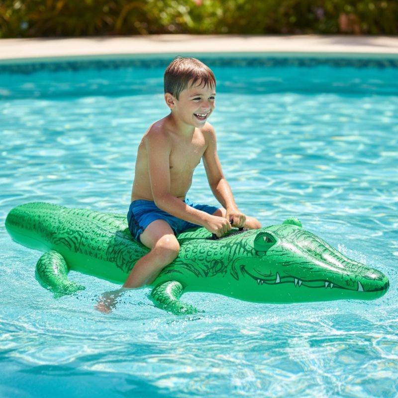 El salvavidas cocodrilo montable con asas Intex es un inflable recreativo ideal para que los niños disfruten del agua de manera divertida y controlada. Su diseño en forma de cocodrilo permite montar con comodidad, favoreciendo el juego activo en la pileta y aportando una experiencia entretenida durante el uso.