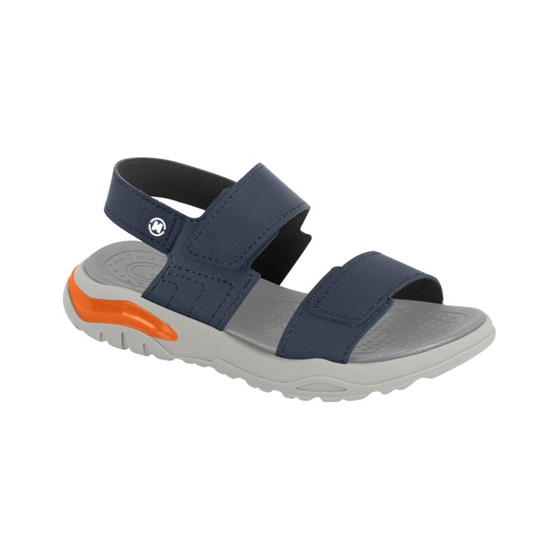 La Sandalia Azul Marino Rústico Niño Molekinho combina comodidad, resistencia y estilo moderno, ideal para acompañar las aventuras diarias de los niños. Cuenta con tiras ajustables de velcro, que permiten un calce rápido, seguro y personalizado, asegurando que el pie permanezca firme durante cualquier actividad. Su suela robusta bicolor en gris claro y azul oscuro ofrece estabilidad y tracción confiable, mientras que el detalle naranja brillante en el lateral del talón añade un toque moderno y distintivo al diseño.