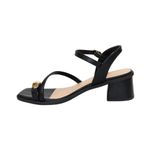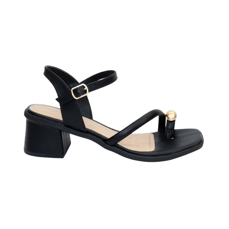 Esta sandalia de tacón bloque combina elegancia y modernidad en un diseño minimalista y sofisticado. Su puntera cuadrada aporta un estilo contemporáneo, mientras que la tira fina cruzada ofrece un calce seguro y delicado. El elegante detalle esférico dorado en el dedo resalta con sutileza, añadiendo un toque distinguido ideal para eventos formales, cenas o salidas especiales.