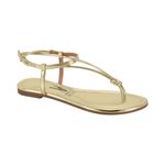 La Sandalia Con Nudo Metálica Dorado Mujer Vizzano combina elegancia y confort en un diseño plano ideal para lucir con frescura durante los días cálidos. Su acabado metálico le da un toque sofisticado, perfecto para realzar cualquier conjunto de temporada.