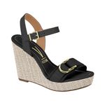 La Sandalia Cuña Alta American Negra Mujer Vizzano es un calzado veraniego que combina elegancia y comodidad. Su diseño incluye una cuña alta forrada con acabado trenzado, que aporta un estilo natural y moderno. La parte superior presenta tiras negras con hebilla decorativa de metal dorado sobre el empeine, mientras que la tira ajustable al tobillo con hebilla dorada asegura un calce seguro y personalizado. Ideal para eventos, salidas urbanas o reuniones informales con estilo.