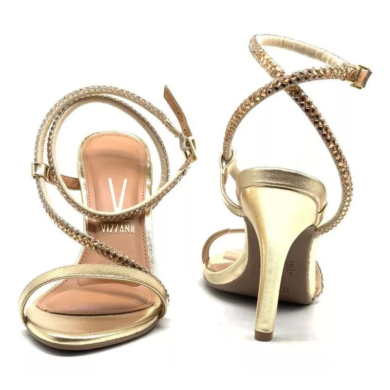 Sandalia Dorado Taco 7 Fino Con Stras Vizzano