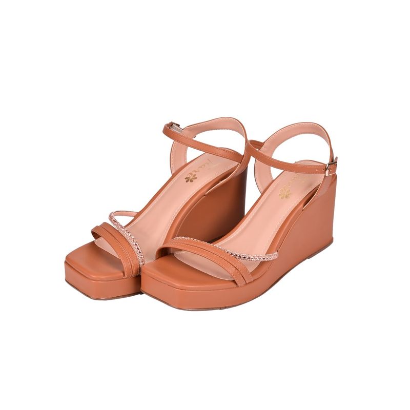 Sandalia Marron Taco Americano Con Brillo Tiare