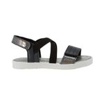 La Sandalia Negro Lolinha Niña Klin presenta un diseño moderno de inspiración deportiva, ideal para las niñas que buscan comodidad y estilo en un mismo calzado. Destaca por su suela de plataforma baja que brinda soporte adicional y por sus tiras con contraste de texturas y acabados. Una de las tiras tiene un acabado iridiscente que aporta un detalle llamativo, mientras que la otra es elástica y cruza el empeine, asegurando firmeza y confort.