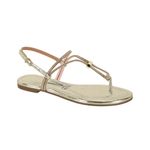 La sandalia plana Vizzano dorada metálica con tiras finas y detalle metálico es la elección ideal para quienes buscan un calzado cómodo, versátil y con un toque de brillo para el verano.