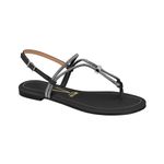 La sandalia plana Vizzano negra con tiras finas brillantes y detalle metálico es una excelente opción para quienes desean un calzado cómodo, versátil y con estilo para el uso diario y ocasiones casuales.