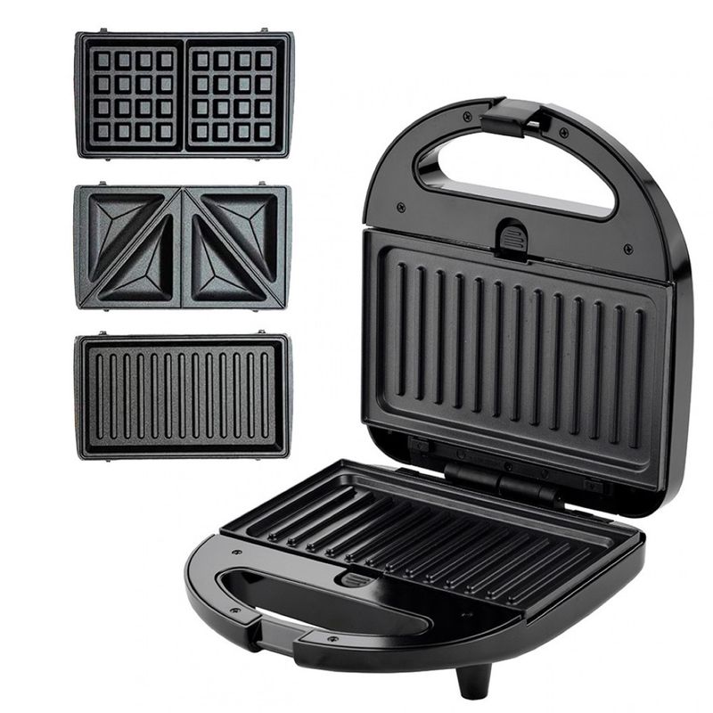 3 en 1: Incluye 3 placas intercambiables para sándwiches, waffles o grill.