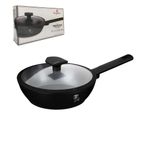 Este sartén de 24 centímetros es un utensilio versátil y funcional para la cocina diaria. Su superficie antiadherente permite cocinar con menor cantidad de aceite y facilita la limpieza, mientras que la tapa de vidrio templado con pomo en color oro rosa aporta estilo y practicidad, permitiendo controlar la cocción y liberar el vapor de manera segura.