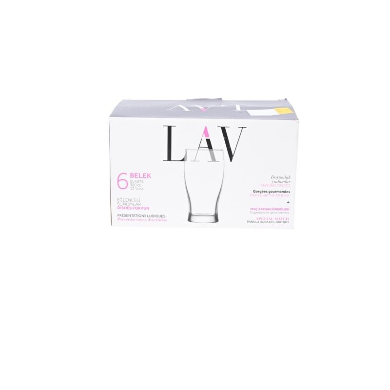 El Set de 6 Vasos Cerveza 375 Mililitros Belek Artcraft de Lav es perfecto para disfrutar de cervezas, refrescos y otras bebidas en cualquier ocasión. Su diseño cómodo y elegante facilita el vertido y la degustación, convirtiéndolo en un accesorio ideal para reuniones, eventos sociales o el uso diario en el hogar.