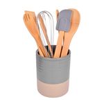 Soporte de cerámica (aproximadamente 12 centímetros de diámetro x 16 centímetros de altura): mantiene los utensilios organizados y siempre a mano, aportando estilo y orden en la cocina.
