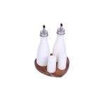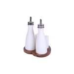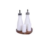 Fabricado con materiales resistentes y duraderos, incluyendo una base de madera sólida que aporta estabilidad y soporte a los cinco porta aderezos. Los recipientes mantienen su forma y funcionalidad aun con uso diario.