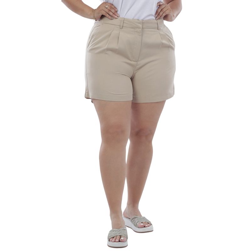 El Short Beige Chino De Sarga Mujer Susan Miller combina elegancia y comodidad en una prenda versátil. Su talle alto y corte holgado ofrece un ajuste cómodo, mientras que los pliegues delanteros estilo chino aportan un toque sofisticado y moderno. La textura en diagonal de la sarga añade carácter al diseño, haciendo que se destaque tanto en looks casuales como más arreglados.