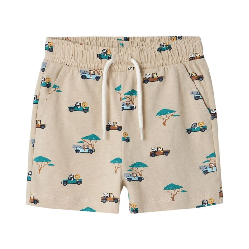 Este short beige para niño de la marca Name It es la prenda esencial para completar el look veraniego de tu pequeño. Con un diseño moderno y cómodo, este short de corte regular presenta un estampado único que le da un toque especial. Su cordón fijo de algodón de 13 cm ajusta perfectamente para mayor comodidad y libertad de movimiento, ideal para las actividades diarias o salidas informales.