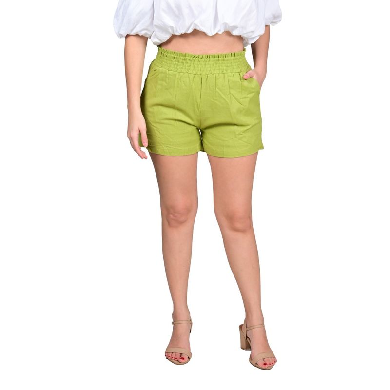 El Short Con Goma Alta Verde Lima Mujer Tiare es una prenda moderna, fresca y cómoda, perfecta para los días de calor o para un look casual y desenfadado. Su corte mini y tiro alto realzan la silueta, mientras que la cintura tipo nido de abeja (smocked) con elástico asegura un ajuste cómodo y adaptable a diferentes cuerpos, ofreciendo libertad de movimiento sin sacrificar estilo.