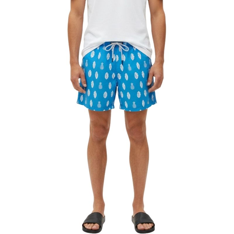 Short de baño con estampado de piñas en tonos Turquesa y Beige, ideal para un look veraniego y fresco. Su diseño incluye cordón ajustable para un calce cómodo y seguro, perfecto para actividades en la playa, piscina o al aire libre.