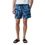 Short de baño con estampado tropical que combina hojas y mariposas, ideal para un look veraniego y fresco. Su diseño llega por encima de la rodilla, ofreciendo libertad de movimiento y comodidad tanto para la playa como para la piscina.