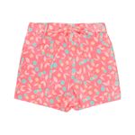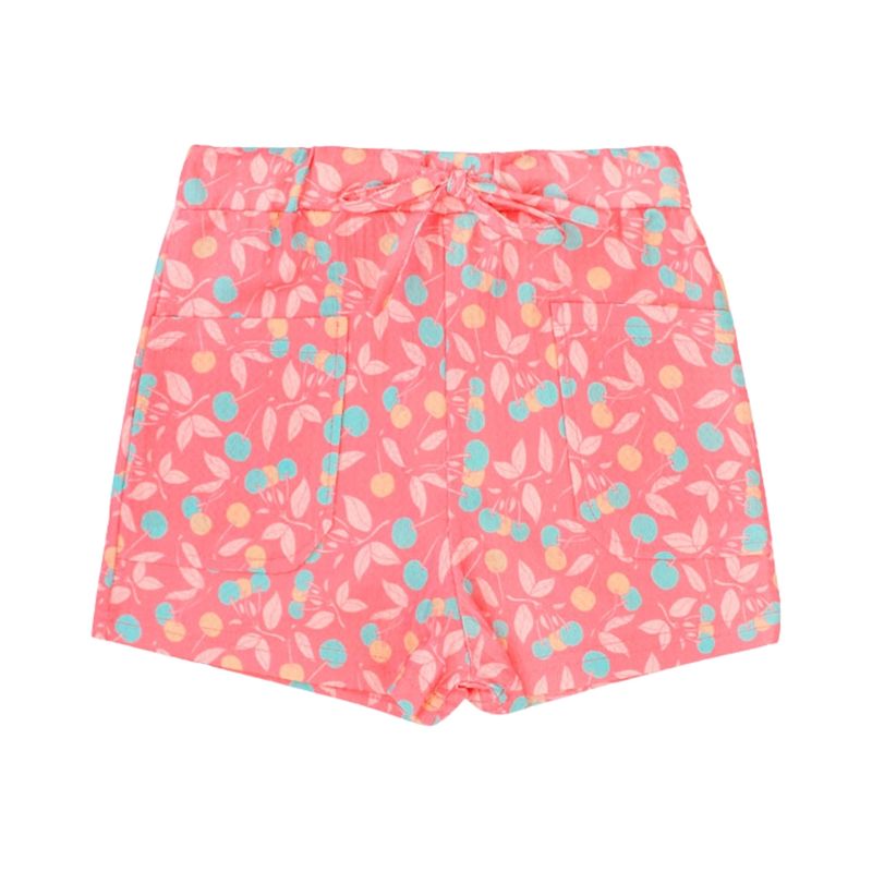 Short urbano para niñas, perfecto para el día a día y actividades casuales. Este short estampado con diseño de cerezas y hojas sobre un fondo coral aporta un estilo alegre y vibrante. La cintura elástica con lazo decorativo asegura comodidad y un ajuste práctico, mientras que los bolsillos frontales suman funcionalidad para pequeños objetos o simplemente para comodidad al jugar.