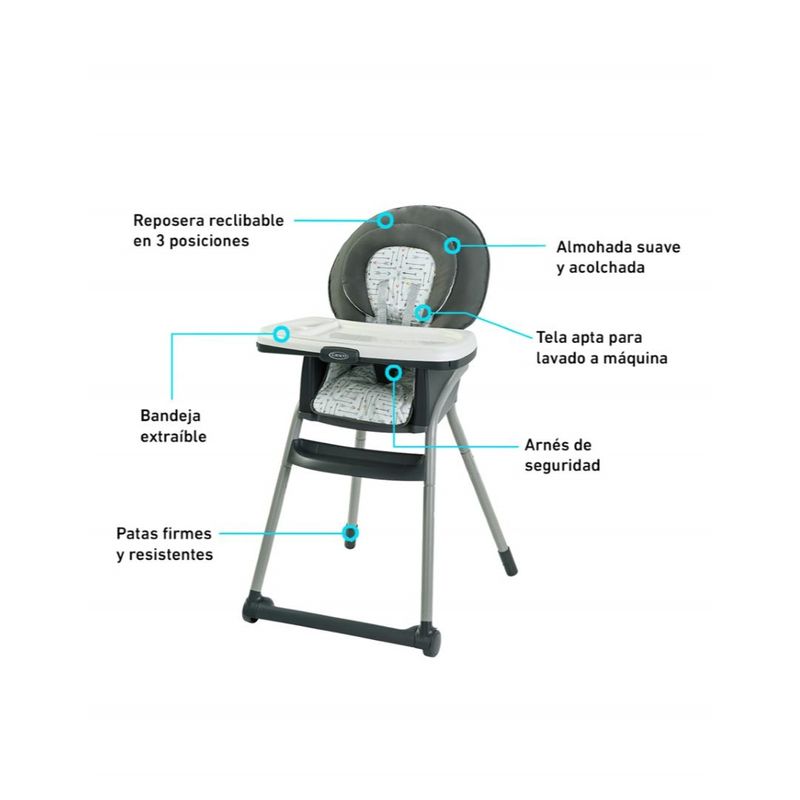 1Silla para comer para recién nacido con reclinación de 3 posiciones.