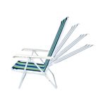 Cuenta con una estructura firme de acero que brinda estabilidad y seguridad durante el uso. Incorpora apoyabrazos anchos y ergonómicos con sistema de ajuste en cuatro posiciones, lo que permite elegir la inclinación más cómoda para descansar, leer o tomar sol. Al no estar en uso, se pliega fácilmente y ocupa poco espacio para guardarla.