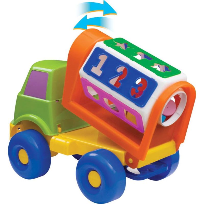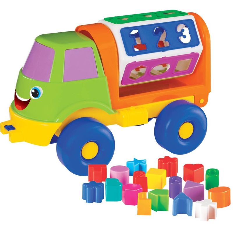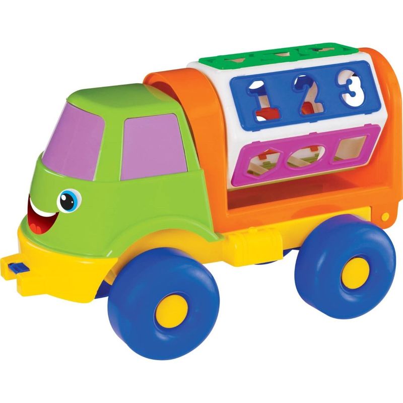 Viene con 18 piezas geométricas, letras y números para encajar.