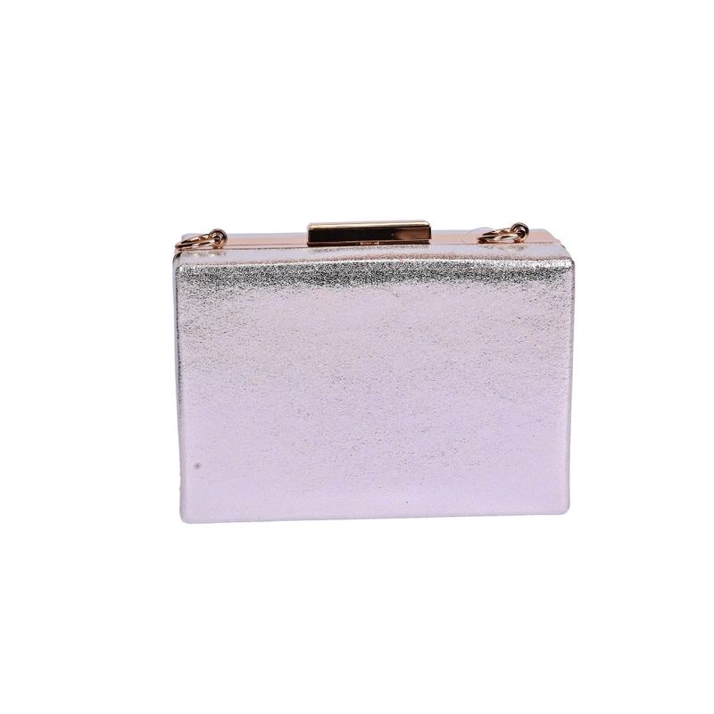 El Sobre Rígido Con Acabado Metalizado Plata Fashion Celina es un accesorio elegante y sofisticado, ideal para eventos nocturnos, cócteles o fiestas formales. Su diseño tipo clutch presenta una forma rectangular con acabado rígido y textura brillante que refleja la luz, otorgando un toque glamuroso y moderno. El diseño minimalista resalta la elegancia del bolso, permitiendo que se convierta en el complemento perfecto de cualquier atuendo de noche.