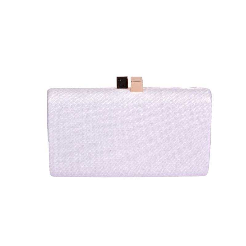 El Sobre Rígido Con Textura Tejida Blanco Fashion Celina es un accesorio elegante y versátil, ideal para eventos diurnos o de noche. Su diseño tipo clutch presenta una forma rectangular con acabado rígido, aportando estructura y distinción. La superficie está cubierta con un material de color blanco o marfil que simula un tejido de cesta o mimbre, ofreciendo un efecto sofisticado, limpio y natural, perfecto para complementar diferentes estilos de vestimenta.