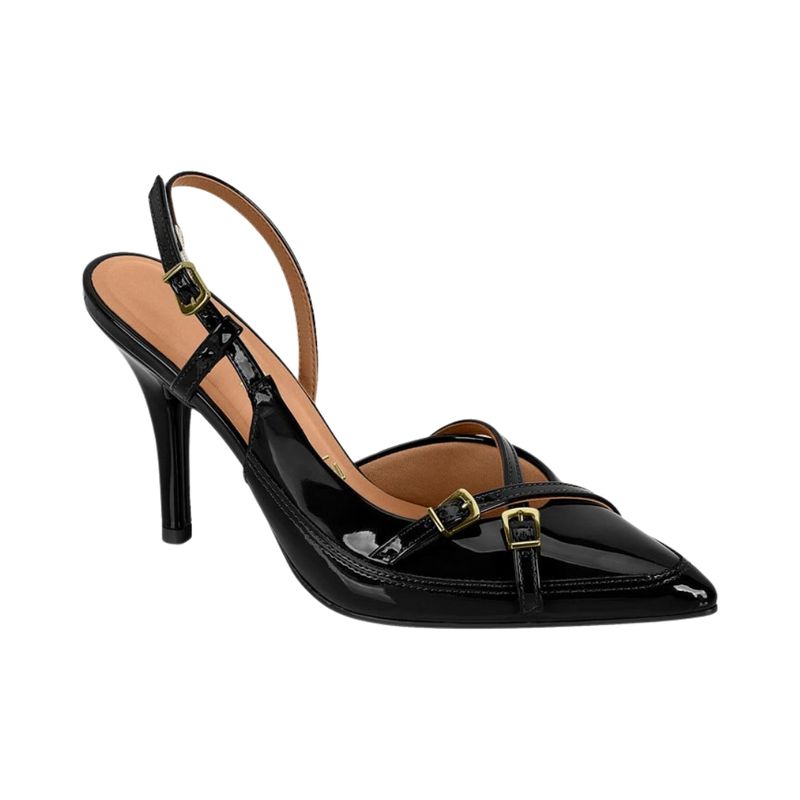 Refiná tu estilo con este stiletto negro con hebillas de Vizzano, un calzado que combina sensualidad, sofisticación y estructura en cada detalle. Su acabado brillante tipo charol y su diseño de correas aportan una estética impactante y elegante, ideal para mujeres que buscan destacar con actitud y presencia.