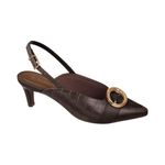 El stiletto con taco fino de 5 centímetros y hebilla en color chocolate es un calzado elegante y femenino, diseñado para aportar sofisticación a cualquier conjunto. Su diseño clásico y moderno permite usarlo tanto en ocasiones formales como en salidas casuales, agregando un toque de distinción y estilo refinado.