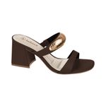 El Sueco Taco Trapecio Con Detalle Dorado Marrón Mujer Bebece se destaca por su diseño moderno, audaz y sofisticado. Este modelo tipo mule, sin talón y de fácil calce, presenta dos tiras anchas en el empeine: una lisa y otra adornada con un detalle dorado martillado que aporta un toque de elegancia contemporánea.