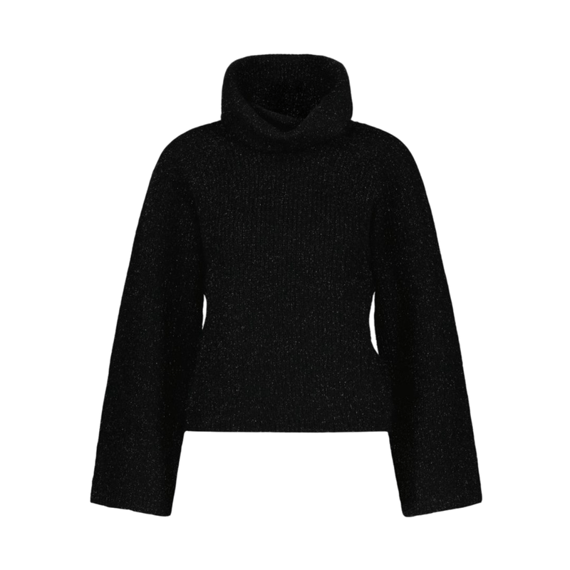 Este suéter de corte más corto presenta cuello alto y mangas sueltas. Queda genial con jeans casuales y elegante con pantalones de vestir o una falda de fiesta.