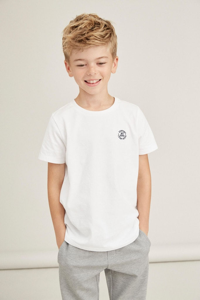 Manga corta Logo bordado Corte regular fit Cuello redondo El algodón orgánico se cultiva sin necesidad de utilizar ningún tipo de pesticidas y fertilizantes sintéticos perjudiciales, lo cual ayuda a preservar tanto la naturaleza como la salud de los agricultores implicados en su cultivo y la de tus hijos. 95% Algodón orgánico, 5% Elastán. Se puede lavar a máquina a un máximo de 40 °C utilizando un programa para prendas delicadas No utilizar productos blanqueadores No secar en secadora