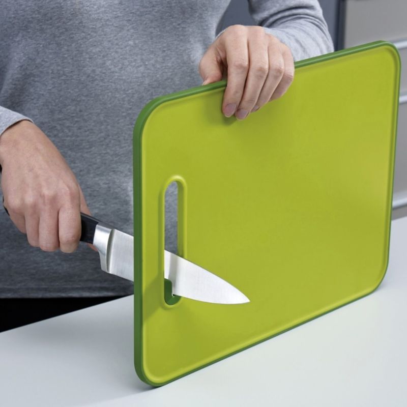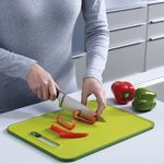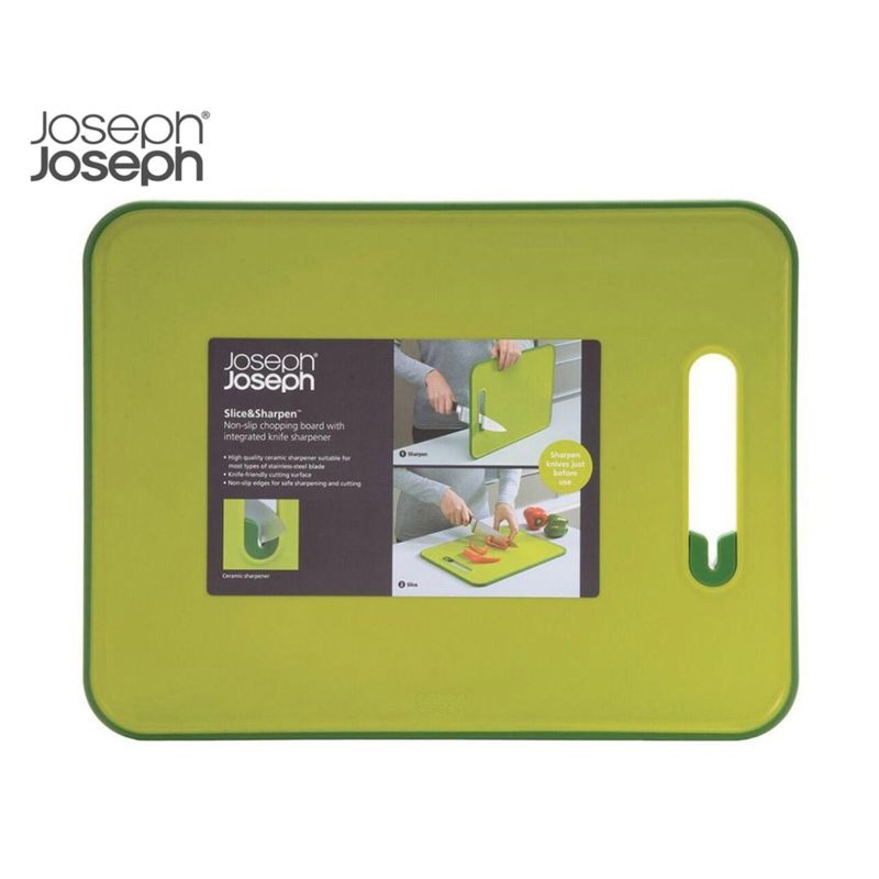Tabla de Cocina Joseph Joseph , Afile sus cuchillos rápida y fácilmente antes de cortar alimentos con este diseño mejorado de tabla de cortar. Tiene un afilador de cerámica integrado en la superficie que le permite perfeccionar la calidad de sus cuchillas justo antes de usarlas. Un borde de goma antideslizante asegura que la tabla permanezca segura en su lugar al afilar. La tabla en sí tiene una superficie de corte amigable con los cuchillos que protegerá la integridad de sus cuchillos