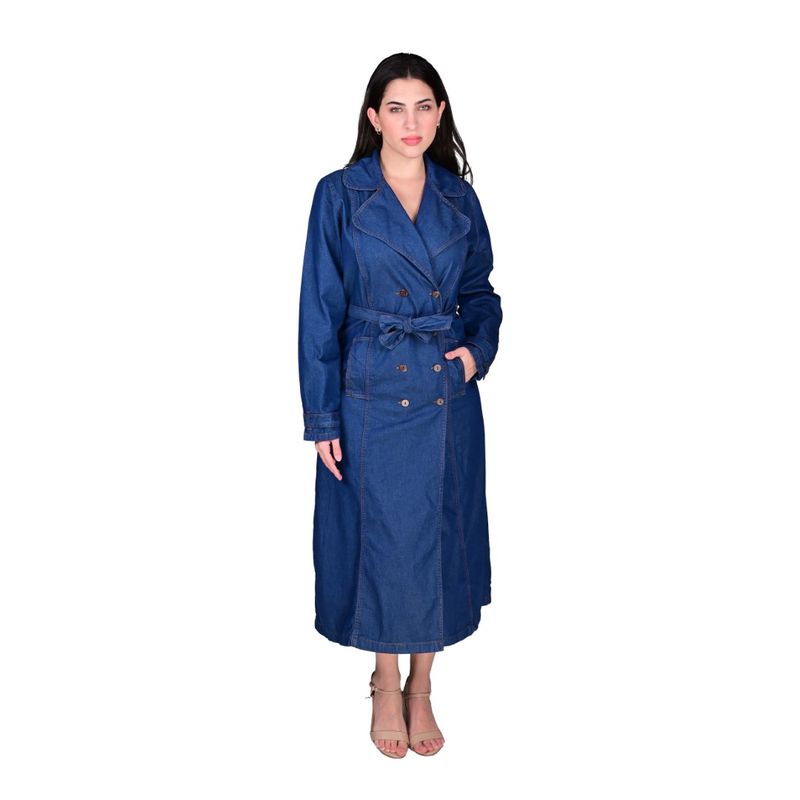 Perfecto para los días de entretiempo o el invierno suave, este tapado denim es ideal para usar tanto en la oficina como en salidas informales. Su diseño equilibrado entre lo clásico y lo contemporáneo lo convierte en un básico infaltable del guardarropa femenino.