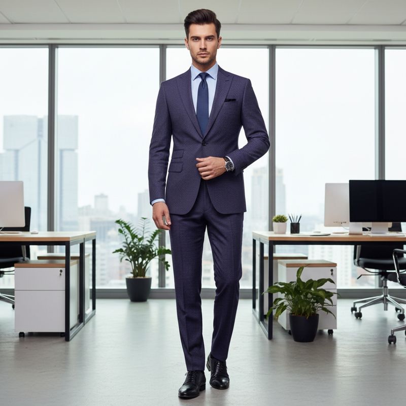 Su tono azul oscuro aporta sofisticación y se adapta a diversas combinaciones de colores y estilos, permitiendo creaciones formales y casuales con un toque contemporáneo. La tela combina funcionalidad y estética, ofreciendo comodidad y estilo en cada uso.