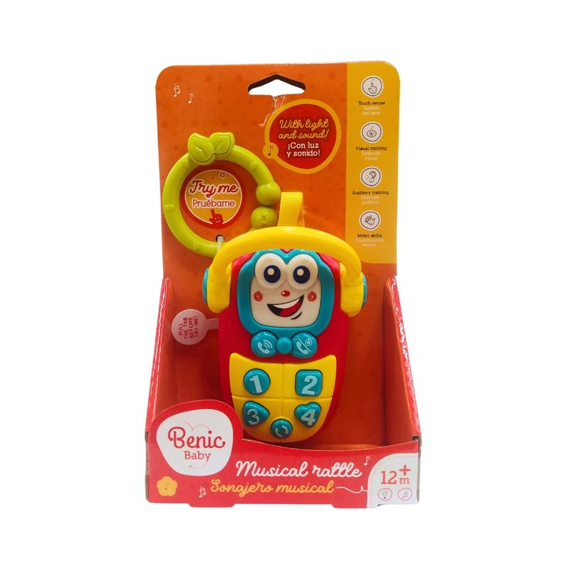 El Telefono Con Sonido Benic Baby es un juguete interactivo diseñado para estimular el aprendizaje temprano a través del juego simbólico. Ideal para acompañar las primeras etapas del desarrollo, este teléfono infantil incorpora sonidos que captan la atención del niño y fomentan la exploración sensorial.
