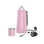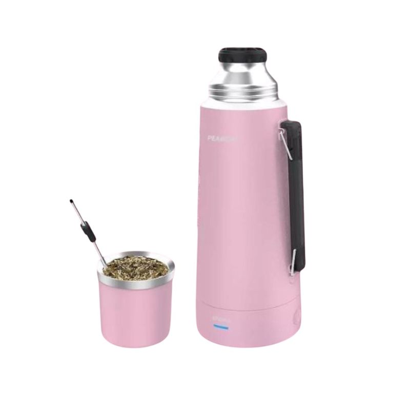 - Primer termo que calienta el agua. - Doble capa de acero inoxidable con aislación de vacío (18/8) - Capacidad de 1 L. - 2 temperaturas de corte: “MATE” en 75°C y “MÁX” en 90°C - 700W de potencia - Indicador luminoso de temperatura. - Tapón cebador con cierre antigoteo. - Tapa mate térmica de acero inoxidable, conserva la temperatura durante toda la cebada y logra que la yerba se lave menos. - Bombilla de acero inoxidable, que no se tapa y de fácil limpieza. - Incluye cable de alimentación