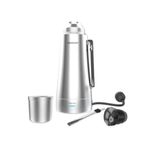 - Primer termo que calienta el agua. - Doble capa de acero inoxidable con aislación de vacío (18/8) - Capacidad de 1 L. - 2 temperaturas de corte: “MATE” en 75°C y “MÁX” en 90°C - 700W de potencia - Indicador luminoso de temperatura. - Tapón cebador con cierre antigoteo. - Tapa mate térmica de acero inoxidable, conserva la temperatura durante toda la cebada y logra que la yerba se lave menos. - Bombilla de acero inoxidable, que no se tapa y de fácil limpieza. - Incluye cable de alimentación