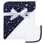 La toalla y el paño con capucha Hudson para bebés están hechos de felpa de algodón 100% súper suave y extra absorbente y son perfectos para secar al bebé después de la hora del baño. La toalla con capucha presenta una capucha estampada de colores. La toalla mide 30 x 36 pulgadas y la toallita mide 10 x 10 pulgadas.