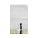 Perfecta para el secado diario del rostro y manos, así como para complementar juegos de toallas en baños principales o de visitas. Su combinación de colores blanco y dorado aporta un toque sofisticado a cualquier espacio.