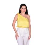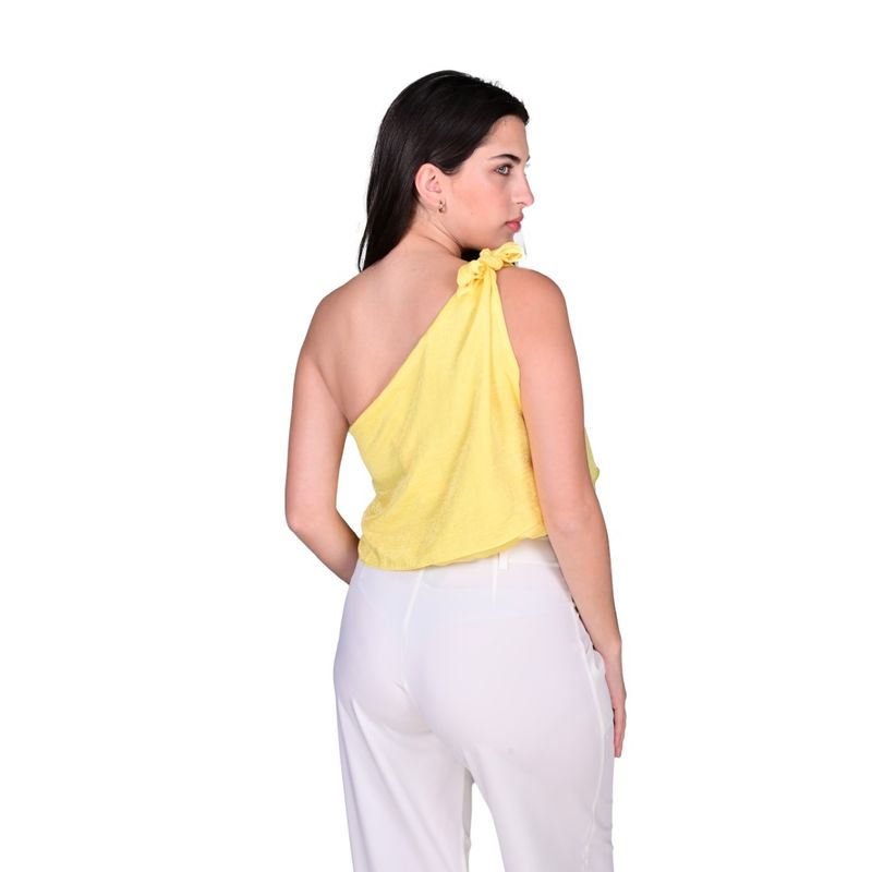 El Top Amarillo Un Solo Hombro de Tiare es una prenda femenina y moderna que aporta frescura y estilo a cualquier outfit. Su diseño asimétrico deja un hombro descubierto, mientras que el hombro cubierto presenta un detalle de lazo prominente que agrega sofisticación y un toque distintivo. El bajo fruncido con elástico asegura un ajuste cómodo y seguro, realzando la silueta femenina y ofreciendo versatilidad para distintas ocasiones.